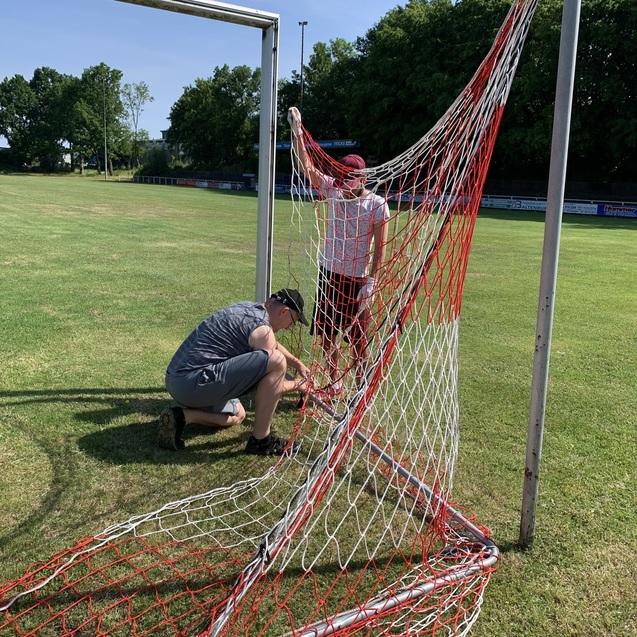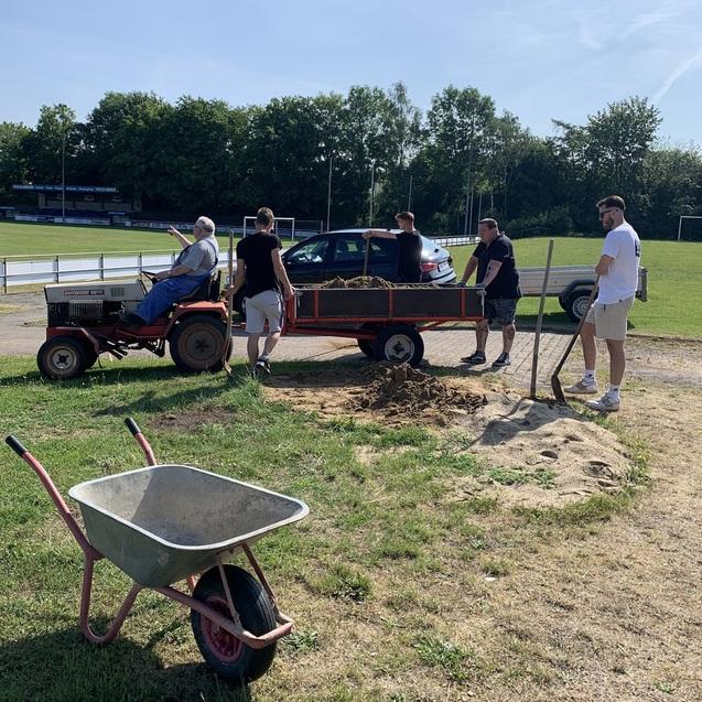 Grünschnitt wurde aufgeladen, Bauschutt abtransportiert und Sand geschaufelt. Die Aufgaben waren abwechslungsreich. An allen Ecken und Enden wurde gewerkelt. Der A-Platz wurde nach langer Sperrung nun wieder mit Tornetzen ausgestattet und vermessen. Der C-Platz erhielt ebenfalls neue Netze. Auf dem B-Platz wurden die Strafräume gemäht und die Leichtathletikbahn sowie der Eingang wurden weitestgehend von Unkraut entfernt. Dabei kam die Verpflegung der Helfer nicht zu kurz. Zum Frühstück gab es belegte Brötchen und Bananen. Als Abschluss wurde gemeinsam gegrillt.