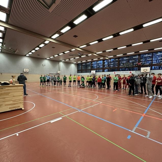 Den Abschluss des Wochenendes bildete das Sparkassen-Hallenmasters Qualifikationsturnier. 8 Teams wurden in zwei Gruppen aufgeteilt und traten um die begehrten Qualifikationspunkte an. Unsere Jungs mussten sich in den Derbys gegen den FC Stadthagen und die SG Liekwegen/Sülbeck/Südhorsten knapp geschlagen geben. Diese beiden Teams standen sich tatsächlich am Ende des Turniers in einem spanenden Finale erneut gegenüber! Immerhin gegen den SV 45 Krainhagen-Röhrkasten konnten wir einen Sieg einfahren, schieden aber dennoch in der Vorrunde aus.