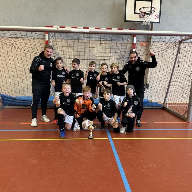 Den Abschluss des Wochenendes bildete das Sparkassen-Hallenmasters Qualifikationsturnier. 8 Teams wurden in zwei Gruppen aufgeteilt und traten um die begehrten Qualifikationspunkte an. Unsere Jungs mussten sich in den Derbys gegen den FC Stadthagen und die SG Liekwegen/Sülbeck/Südhorsten knapp geschlagen geben. Diese beiden Teams standen sich tatsächlich am Ende des Turniers in einem spanenden Finale erneut gegenüber! Immerhin gegen den SV 45 Krainhagen-Röhrkasten konnten wir einen Sieg einfahren, schieden aber dennoch in der Vorrunde aus.