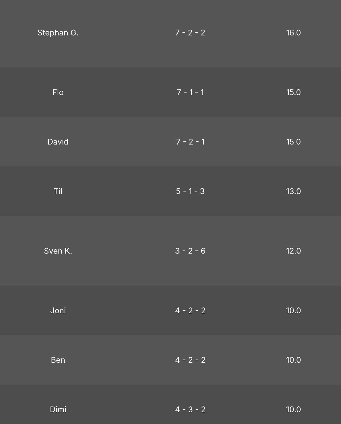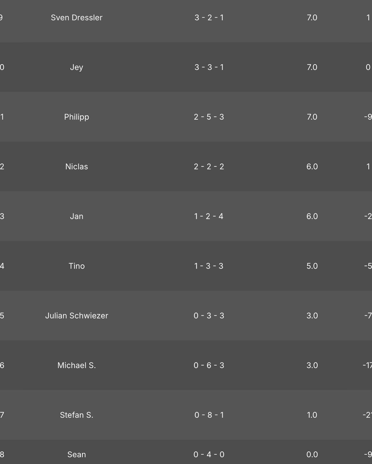 Die nächsten Einzel bestritten David und Sven. Auch diese beiden Spiele gingen in den Decider. Sven musste sich in einem spannenden Match geschlagen geben. Doch David konnte im Decider zeigen was er kann und gewann über ein Bull-Finish das Match.