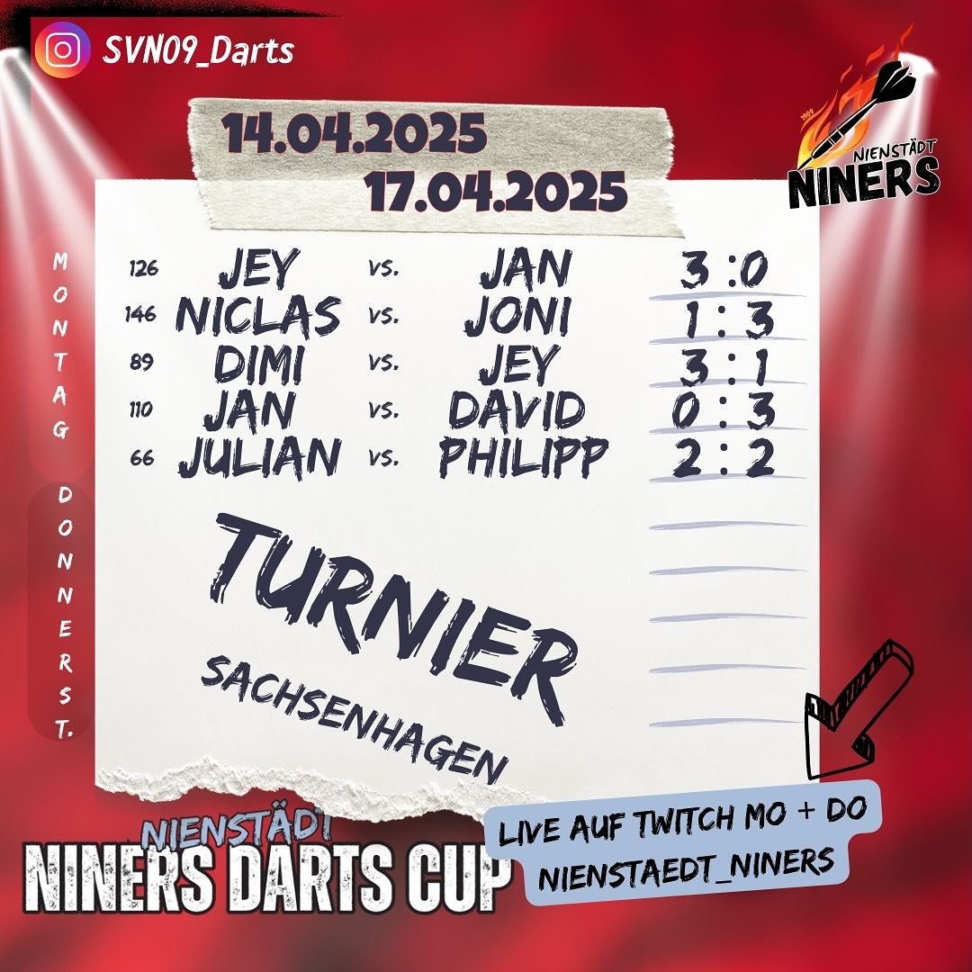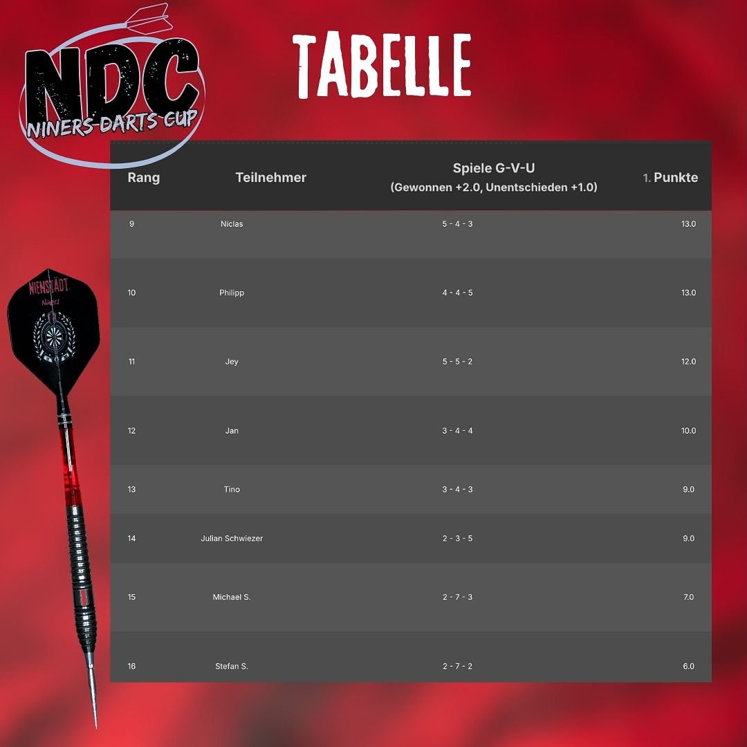#NDC #DartsLeague #NinersDartsCup #DartsGermany #Dartsliebe #RoadToTop8 #Comeback #SpannungPur #Darts #svn_09 #nienstaedt_niners