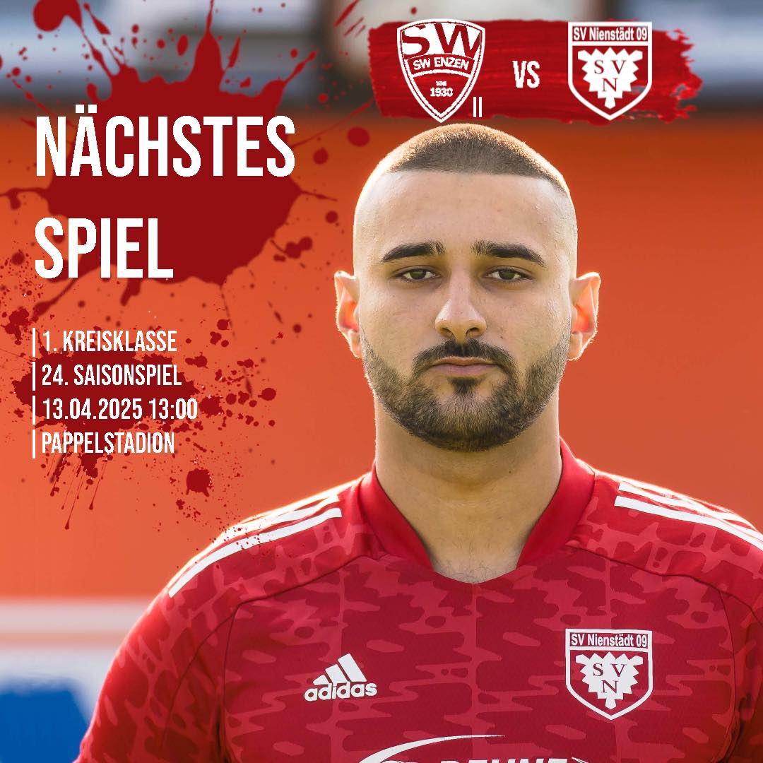 Morgen spielen wir auswärts um 13:00 Uhr bei der Zweitvertretung des TuS SW Enzen 🔴⚪️