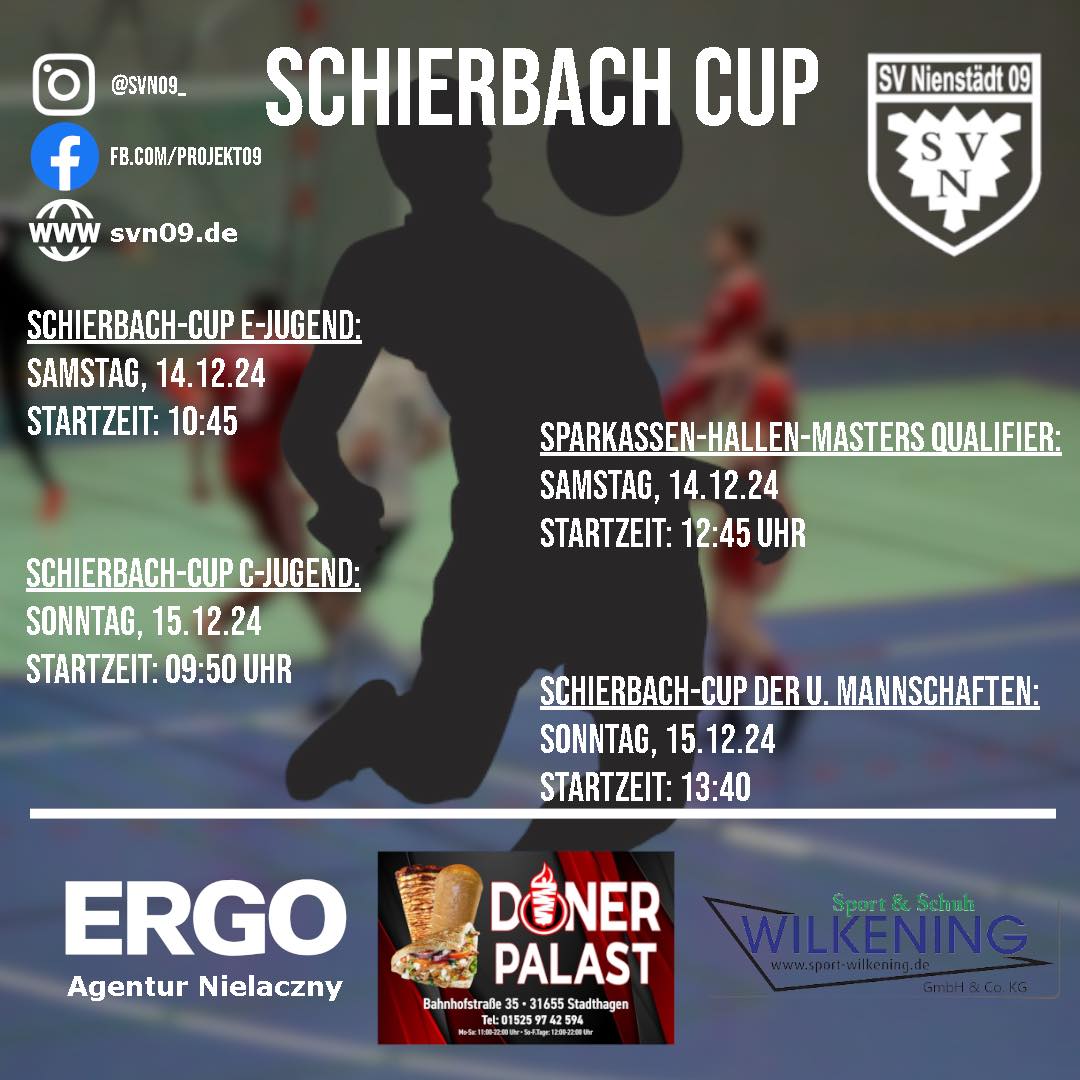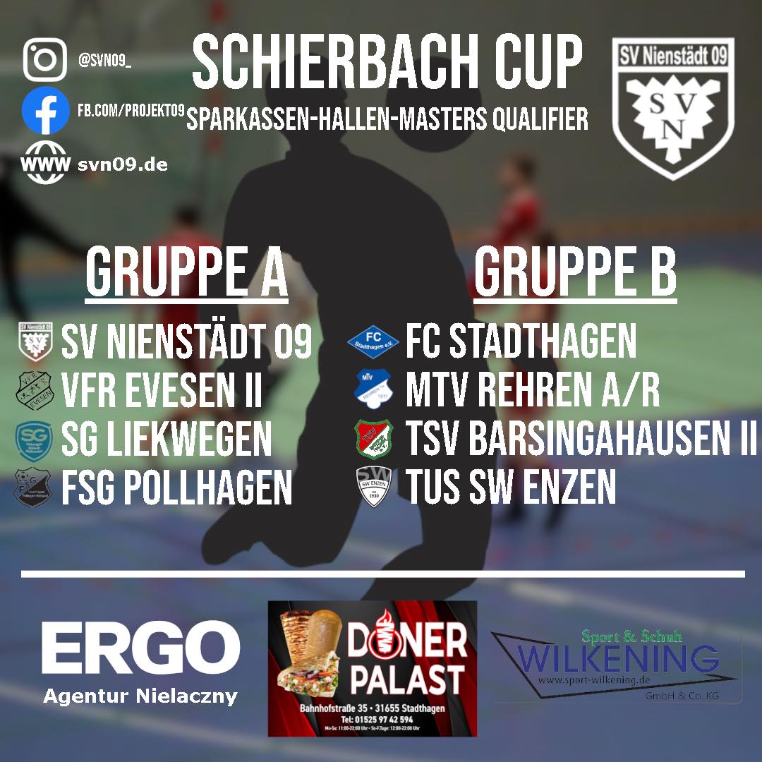 Den Anfang macht am Samstag ab 10:45 Uhr das E-Jugendturnier. Im Anschluss findet das Sparkassen-Masters-Qualifier ab 12:45 Uhr statt, wo unsere erste Herren vertreten ist. Am Sonntag geht es bereits um 9:45 Uhr mit einem C-Jugendturnier der Landesligisten los. Den Abschluss bildet der Schierbach-Cup der unteren Mannschaften um 13:40 Uhr an dem unsere zweite und dritte Herrenmannschaft teilnimmt.
