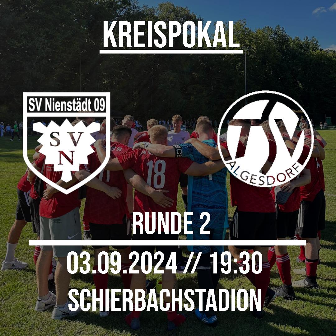 Heute starten wir um 19:30 Uhr in der zweiten Pokalrunde gegen den Kreisligisten TSV Algesdorf bei uns im Schierbachstadion!