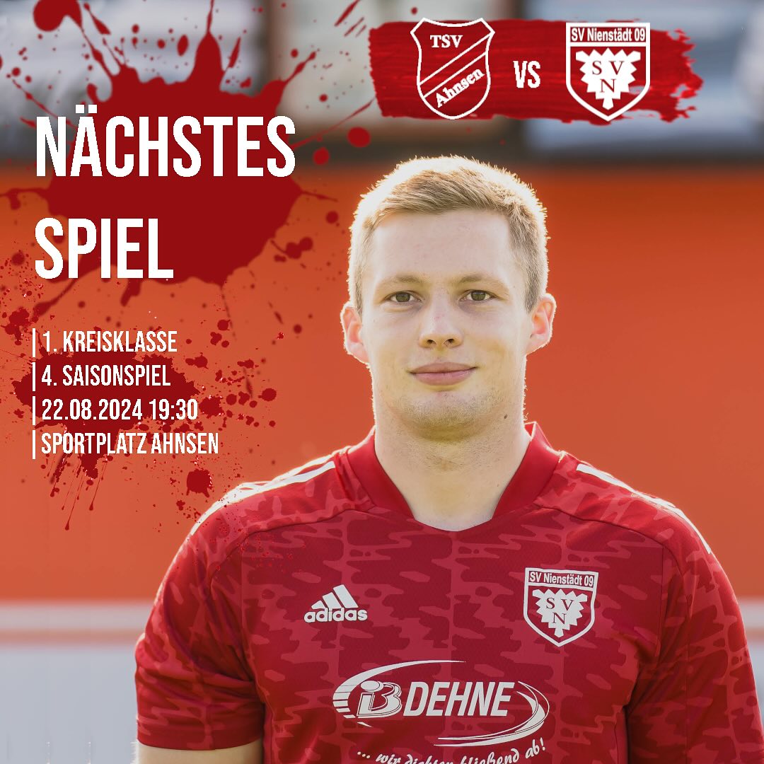 Morgen treffen wir um 19:30 Uhr auf den TSV Ahnsen zum nächsten Auswärtsspiel. Wiedergutmachung steht auf dem Programm nach der 0:2 Niederlage aus dem letzten Spiel gegen den TuS Niedernwöhren.
