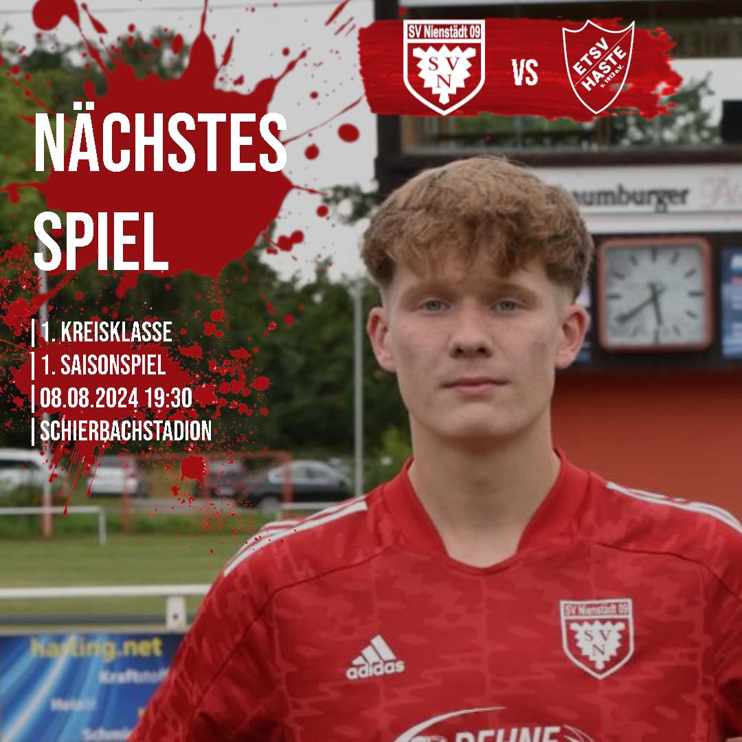 Heute starten wir endlich in die neue Saison! Nach intensiver Vorbereitung unter unserem neuen Trainer Sebastian Hull geht es endlich wieder los für uns in der 1. Kreisklasse. Um 19:30 Uhr ist der ETSV Haste bei uns zu Gast im Schierbachstadion.