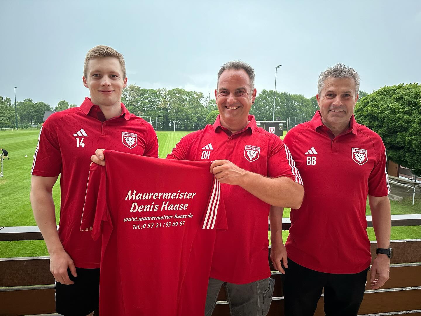 Unsere Mannschaft wurde mit schicken neuen Poloshirts ausgestattet. Wir bedanken uns bei Maurermeister Denis Haase @meister_haase für diese großzügige Spende! Denis selber hat natürlich auch ein Shirt bekommen, in dem er uns in der kommenden Saison gerne anfeuern darf 🥳 Einige Jungs kannte er bereits vorher persönlich, da Sie seine Arbeit in Anspruch genommen haben. Deshalb freuen wir uns ganz besonders, dass er uns jetzt auch im Verein unterstützt.
